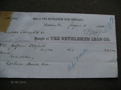Title (ebay affiliate link): BETHLEHEM IRON CO BETHLEHEM PA 1874 RECEIPT TO LEHIGH VALLEY RAILROAD