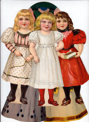 Title (ebay affiliate link): THREE GIRL Paper Dolls 3 Dresses 3 Hats McLoughlin Bros? All Cut Not ID'd 1890's