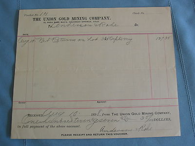 Title (ebay affiliate link): Cripple Creek Colorado Union Gold Mining Company Voucher-1898-Mines & Mining
