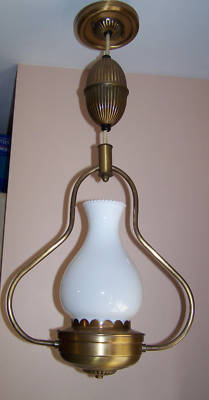 Antique Vintage White Milk Glass Hanging Brass Lamp