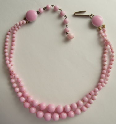 Petal Pink Milk Glass Bead 2-Strand Necklace Old JAPAN