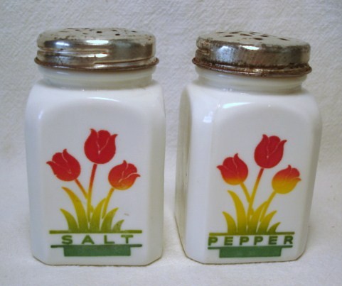 VINTAGE MILK GLASS McKEE TULIP SALT PEPPER SHAKERS