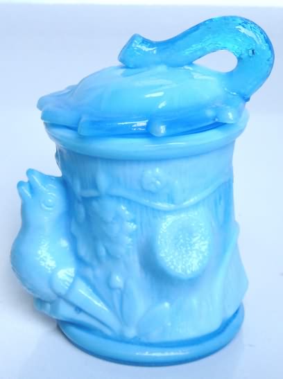 Blue Milk Glass Bird on Stump Honey Pot or Jam Dish
