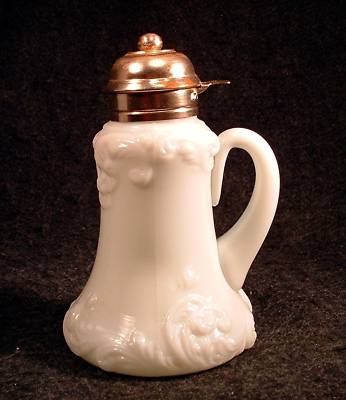 Kemple White Milk Glass Embossed Scroll Syrup Pitcher