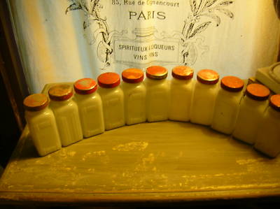 11 Vintage Milk Glass Spice Jars - Set