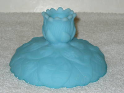 FENTON ART GLASS OPAQUE MILK BLUE SATIN CANDLE HOLDER