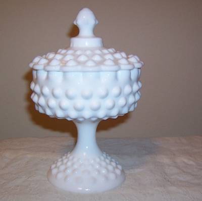 FENTON MILK GLASS HOBNAIL LARGE COVERED CANDY DISH