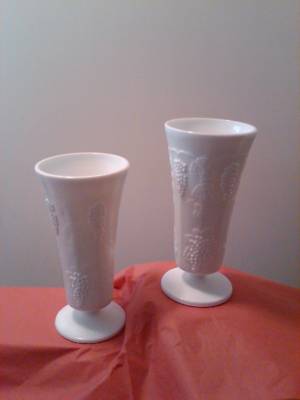 LOT of 2 Vintage Indiana Harvest Grape Milk Glass Vases