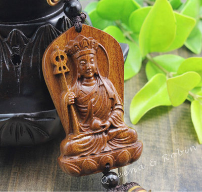 Title (ebay affiliate link): Wood carved Chinese knot Japanese Buddha Dizang Pusa statue sculpture amulet W63