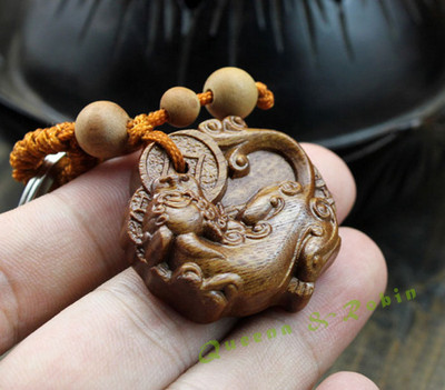 Title (ebay affiliate link): Wood carved Chinese Pixiu son of Dragon sculpture statue amulet Bag Key Chain