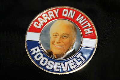 Title (ebay affiliate link): Rare FDR "Carry On With Roosevelt" Enamel Pin, MBI