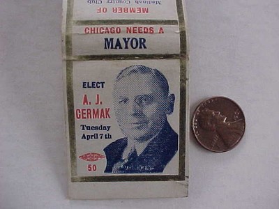 Title (ebay affiliate link): 1930 Chicago Illinois Mayor Anton J.Cermak campaign matchbook-Assassinated 1933!