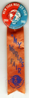 NYWF lg pinback with silky ribbon, ch to gem unc