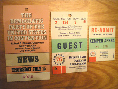 Title (ebay affiliate link): PRESIDENTIAL 1976 REPUBLICAN DEMOCRATIC CONVENTION TICKETS PRESS