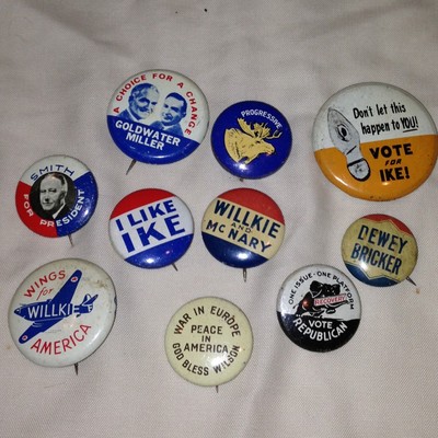 Vintage Presidential Buttons Smith, Eisenhower, Goldwater, Wilkie, Dewey, Wilson