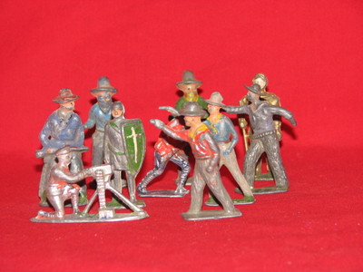 Title (ebay affiliate link): 10 Vintage Metal Figures: 6 Cowboys, 2 Soldiers, 2 knights 2 1/2" - 1 1/4"