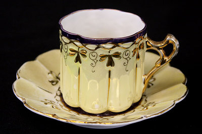 Vintage Yellow Porcelain Demitasse Cup & Saucer Gold Bows