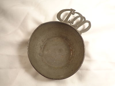 ANTIQUE HEAVY PEWTER PORRINGER BOWL DISH MONOGRAMMED "WCD" RARE