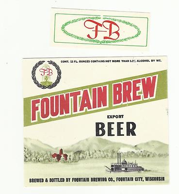 1950's Fountain Brew Beer Label Fountain, Of Fountain City, WI 12oz "3.2%" #2