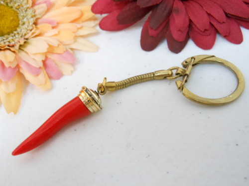 Title (ebay affiliate link): VINTAGE GOLD TONE RED ACRYLIC ITALIAN HORN KEYCHAIN B9468