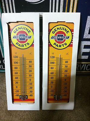 2 GENUINE CHEVROLET PARTS THERMOMETER METAL SIGN,CHEVY,GARAGE,BODY SHOP MANCAVE