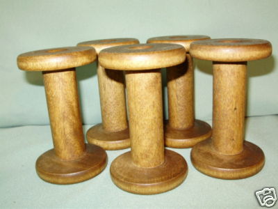 Title (ebay affiliate link): 5 WOODEN SILK SPOOLS, BOBBINS 4" BEAUTIFUL PATINA