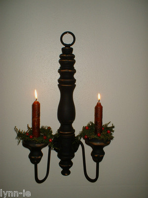 Title (ebay affiliate link): 2/Primitive Colonial Iron&Wood~Double Armed Candle Sconce~w/Candles~Sweet Annie