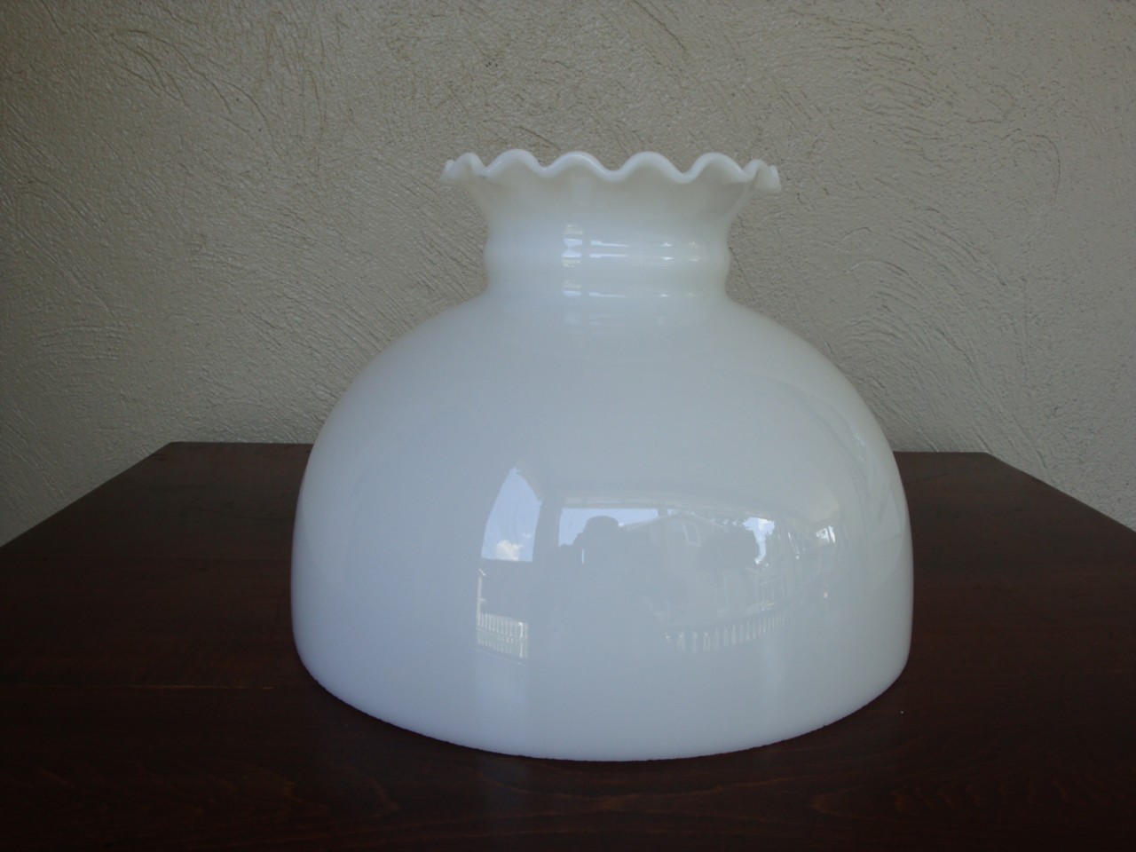 GREAT Aladdin 10" Milk Glass Oil Lamp Shade Ruffled Top