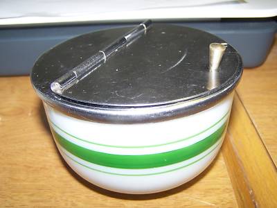 Vintage 1930s-40s Milk Glass Sugar Bowl Steel Top MEDCO