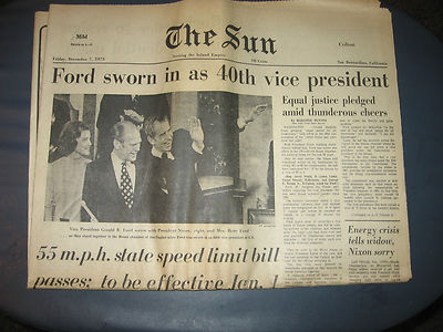 Title (ebay affiliate link): Orig. Dec. 7, 1973 newspaper - Gerald Ford Inaugurated as 40th U.S. President