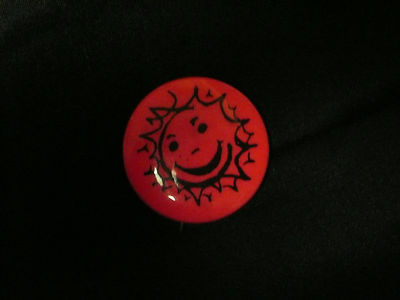 vintage 60's Counter Culture pinback Orange Sunshine Brand LSD Logo