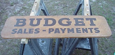 Title (ebay affiliate link): Old Wood BUDGET SALES PAYMENTS Sign Attic Find 1930's Firestone Filling Station