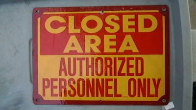 Title (ebay affiliate link): VINTAGE CLOSED AREA AUTHORIZED PERSONNEL ONLY ENAMEL METAL SIGN