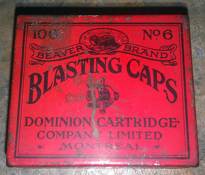 Title (ebay affiliate link): BEAVER BRAND-Blasting caps TIN-Dominion Cartridge Company-NO.6-Montreal !!!