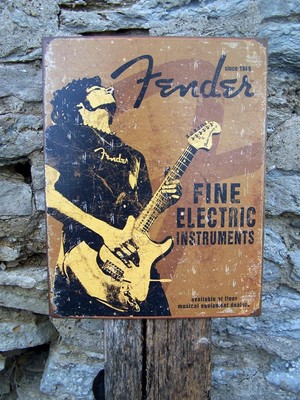 Title (ebay affiliate link): Vintage Style Fender Electric Guitar Metal Sign Retro Ad Wall Decor USA Gift 16"