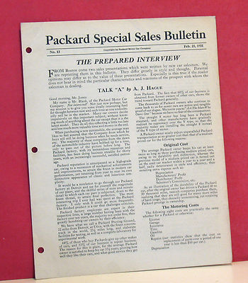 Title (ebay affiliate link): Packard Motor Car Company Special Sales Bulletin - No.13 - February 23, 1931