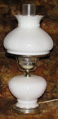 Beautiful Vintage Milk Glass Hobnail Hurricane Lamp