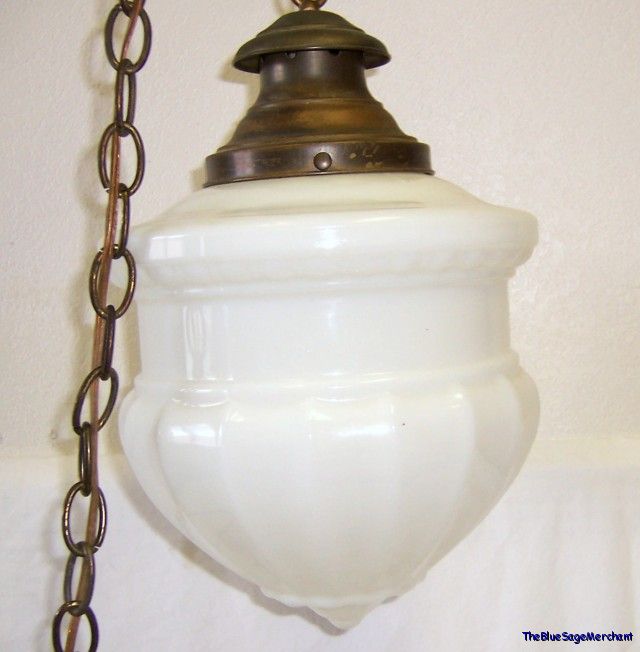 Vtg.Milk Glass HANGING CEILING LAMP Globe Fixture