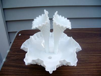 Large Hobnail Milk Glass Epergne
