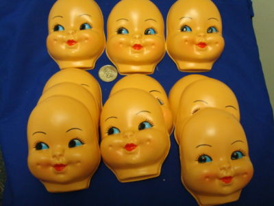 11 VINTAGE ANTIQUE MOLDED BABY DOLL HEADS NEW KEWPIE