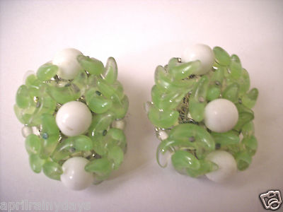 vintage unsigned high end designer milk glass green art glass wired earrings