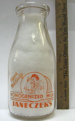 Vintage Janeczek's pyro Glass milk bottle PA pint Way side Dairy Farm SRPP baby