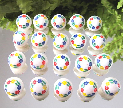 20 MATCHING PAINTED MILK GLASS BUTTONS W/ FLOWERS N8