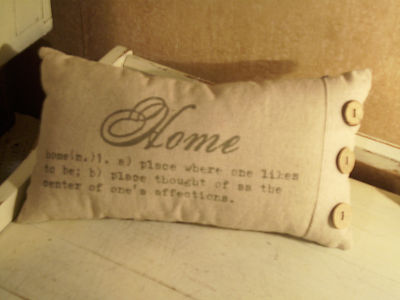 PRIMITIVE SCRIPT "HOME" PILLOW FOLK ART