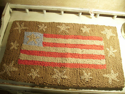 PRIMITIVE HOOK RUG/ CANDLE MAT/ FOLK ART FLAG/ AMERICANA/ PATRIOTIC
