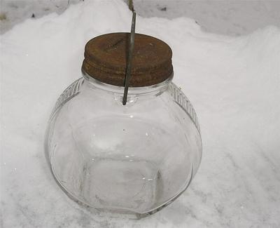 Title (ebay affiliate link): Antique Primitive Glass Jar Rusted Lid & Handle Marked on Bottom