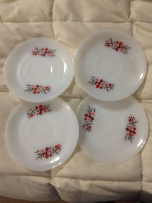 Title (ebay affiliate link): VINTAGE USA WHITE FIRE KING MILK GLASS FLORAL PRIMROSE SAUCER PLATES LOT SET