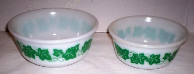 VINTAGE PAIR IVY VINE NESTING BOWLS MILK GLASS OPAQUEWARE