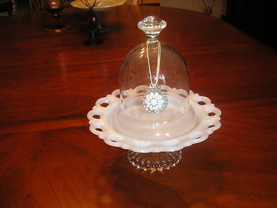 Vintage Milkglass Plate Stand with Dome / Cloche Cover
