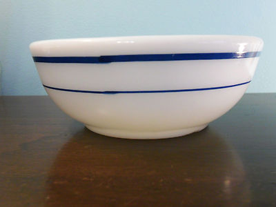 VINTAGE Pyrex Blue-Striped Blue Band CEREAL or SOUP BOWL White Milkglass SWEET!